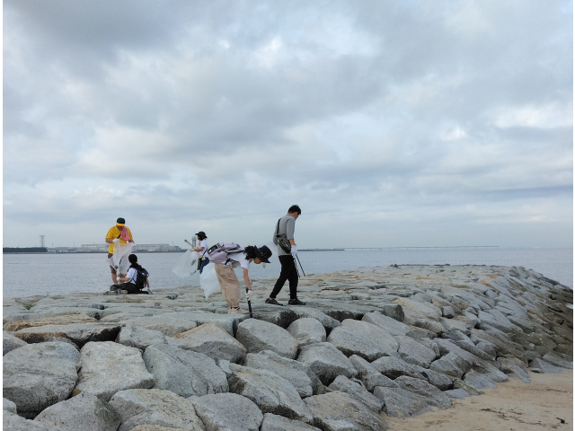 常滑市花火大会2025のゴミ拾いボランティアに他の団体の皆さんと一緒に参加。前日の花火観覧エリアのゴミ拾いをしました。