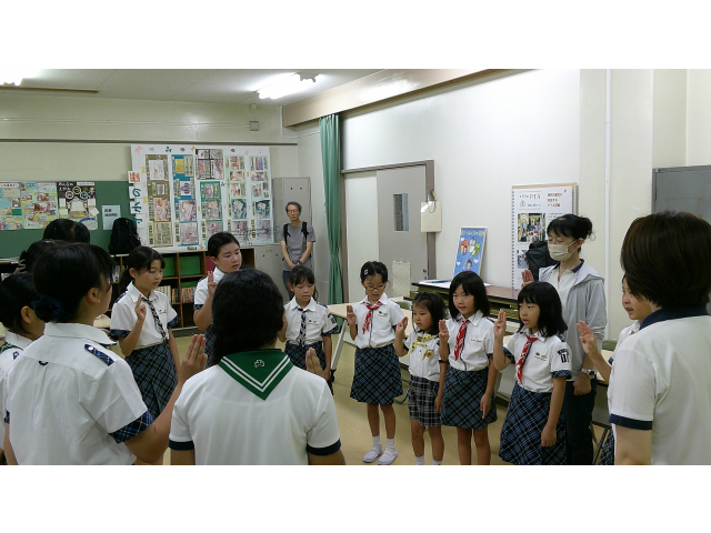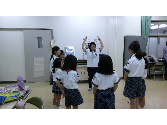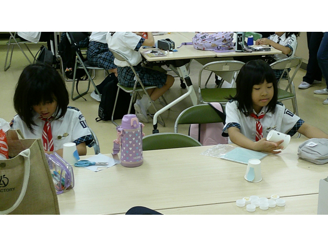今日は、ガールスカウトの基本動作を練習しました。リ-ダーの手のあげ方や笛の合図で、色々な形で集合してみました。また、集会時に各部門の出席人数をリーダーに報告する時の手をあげるタイミングなど、改めて、練習しました。クラフトは、紙コップで作るトコトコ動くペンギンを作りました. かわいいペンギンが、出来上がりました!!