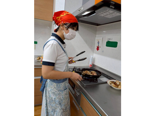 ジュニアは、ぎょうざの皮をパリッと焼いて、具材の盛りつけを