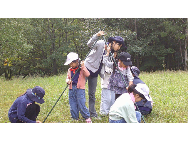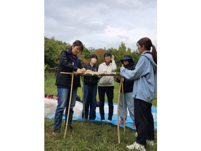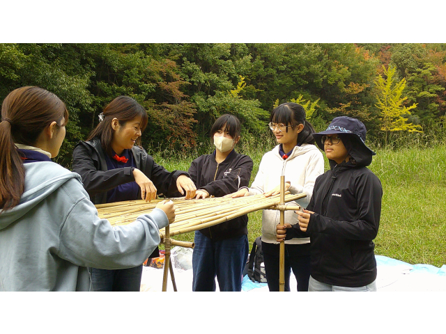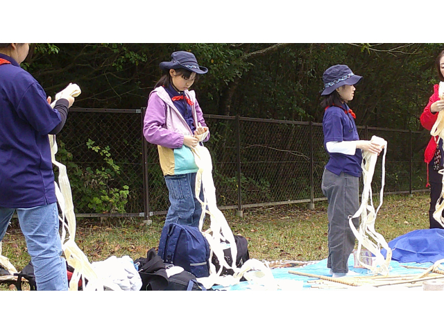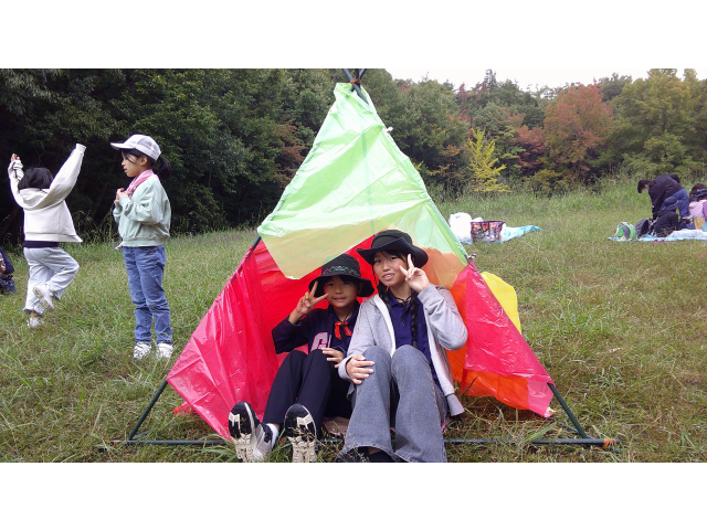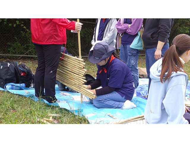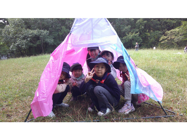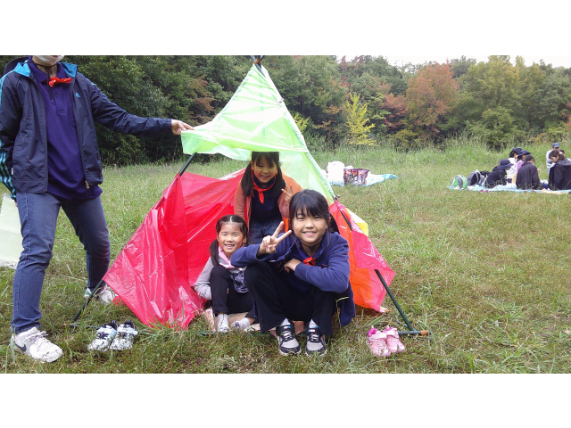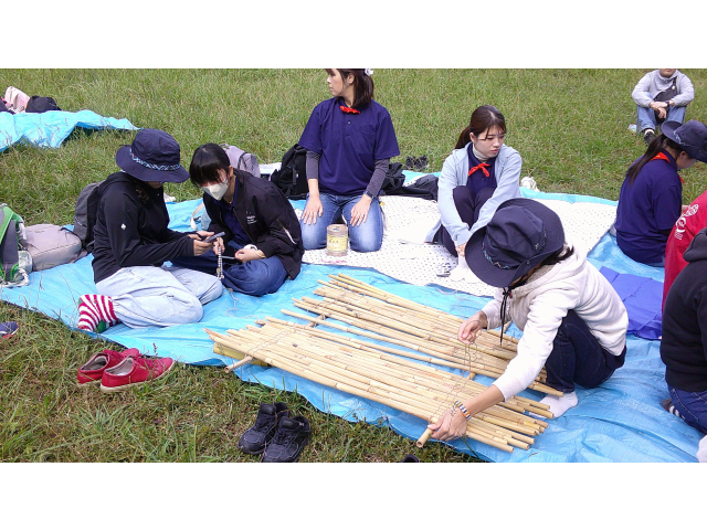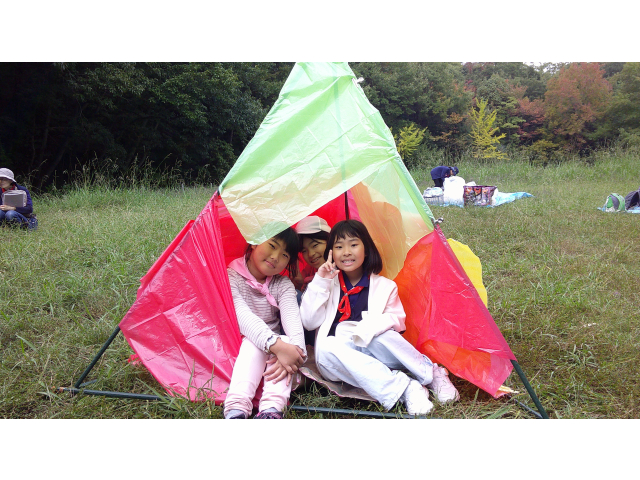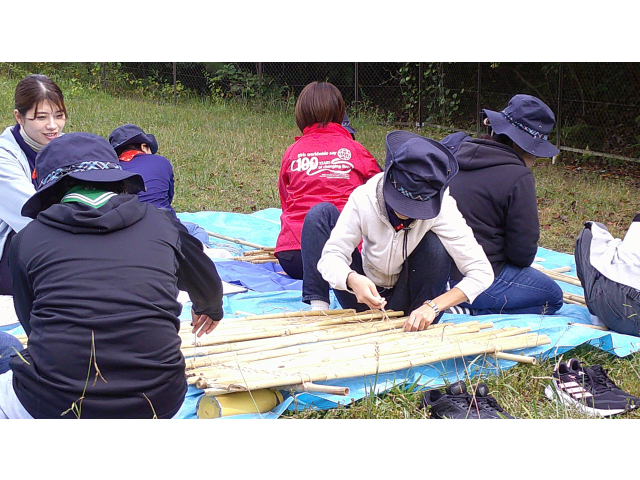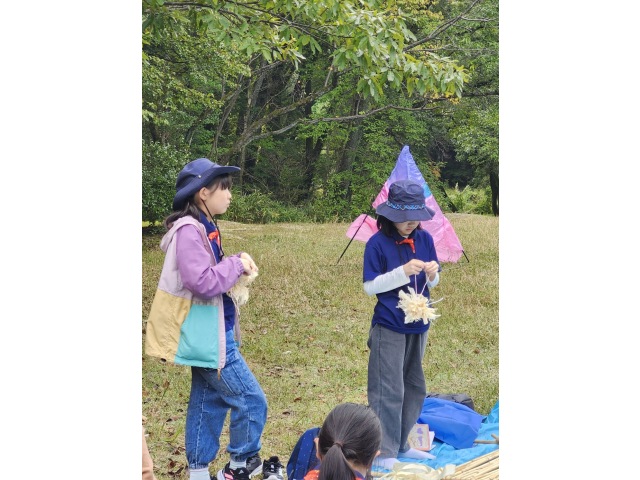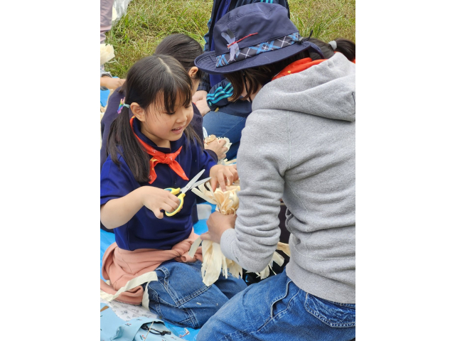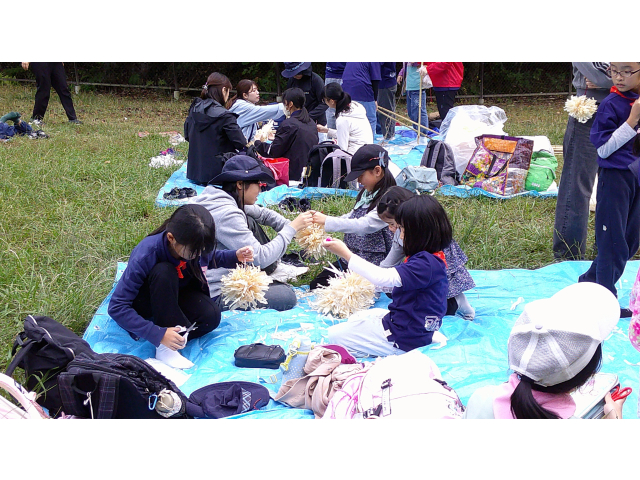 来年の戸隠キャンプに向けて、キャンプクラフトに挑戦しました。低学年は、カラフルなテントを高学年は、竹テーブルを作りました。みんなで考え、支え合い、声をかけ合って、完成しました!!他に、トンボのブローチやヒノキのポンポンを作りました。カンナで削ったヒノキのリボンを使って、球状に成形しました。部屋に飾るとヒノキのいい香りがします!!秋を感じる森の中で、体験者を含めみんなで、元気に楽しく活動できました♪