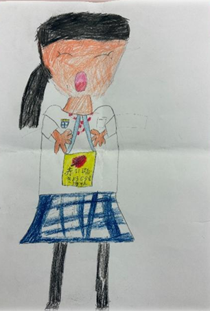 私は文字を書く当番になったので 見る人が見やすいように気をつけて書きました。