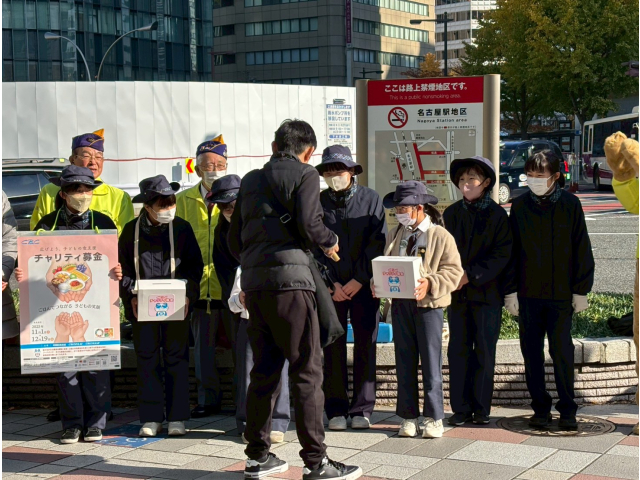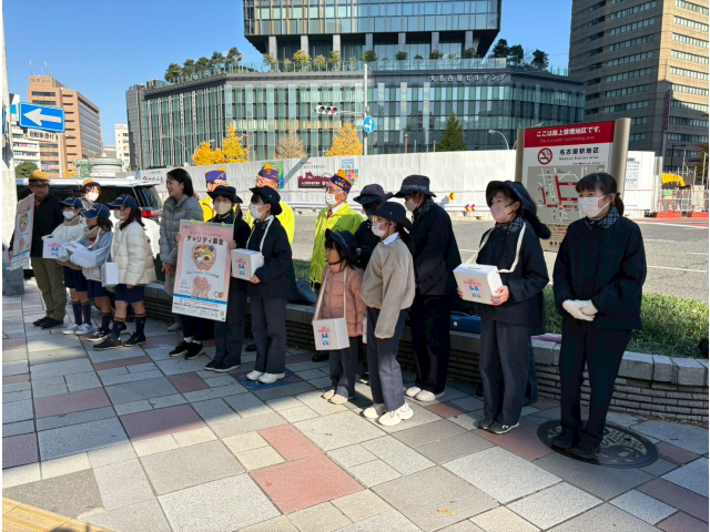 午前10時ごろから正午頃まで名古屋太閤ライオンズクラブやボーイスカウト・ガールスカウトおよそ50人がCBCテレビの古川枝里子アナウンサーと一緒に名古屋駅前で募金を呼びかけました