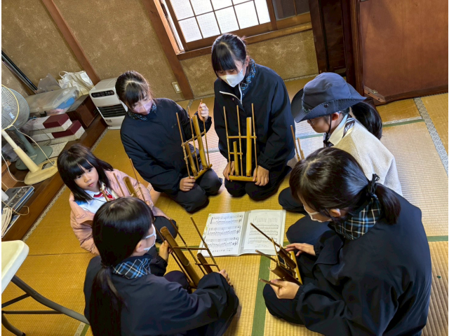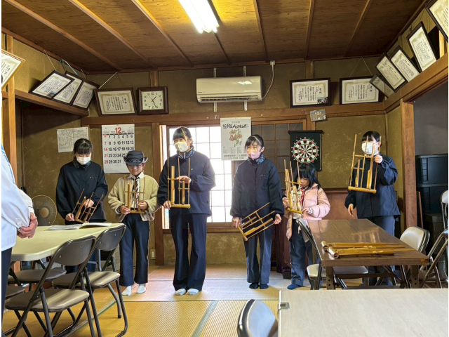 午後からいつもの集会場所に移動して「慰問の練習」鍵盤ハーモニカと縦笛の演奏「アンクルン」の演奏ダンス・プレゼント作り(ごみアート)