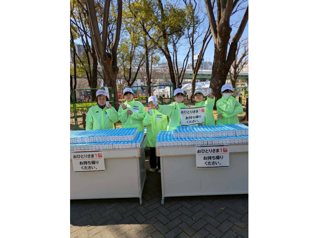 にっこり笑顔で「お疲れさま」と甘酒を渡します