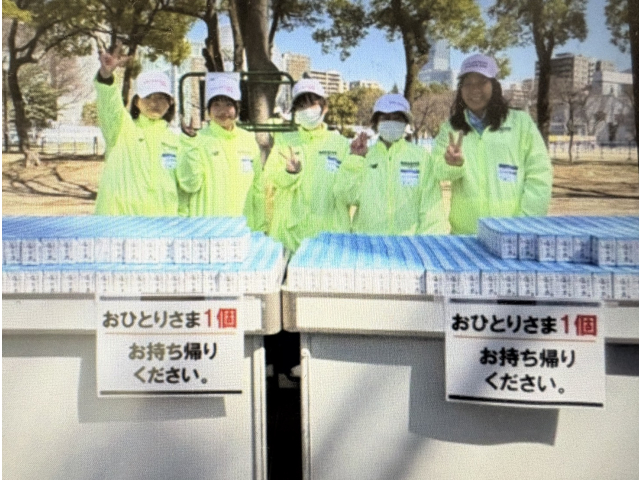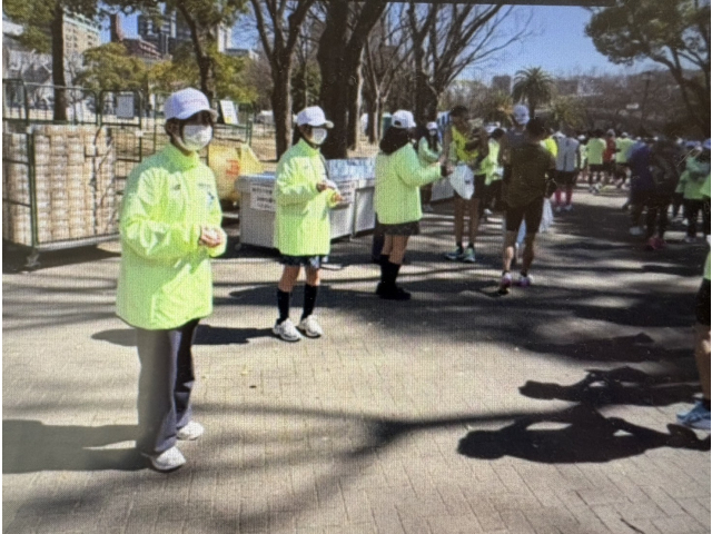 「おつかれさまでした!」と元気よく笑顔で声掛けをしてお渡しすることで、ランナーの方々に気持ちよく受け取ってもらえるように努めました!