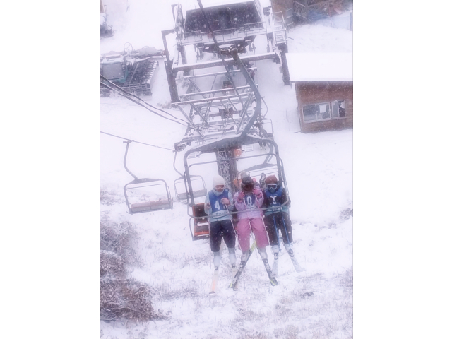 朝早く貸し切りバスに乗り合わせ、自分で着替えたりスキーの技を毎年磨いています。